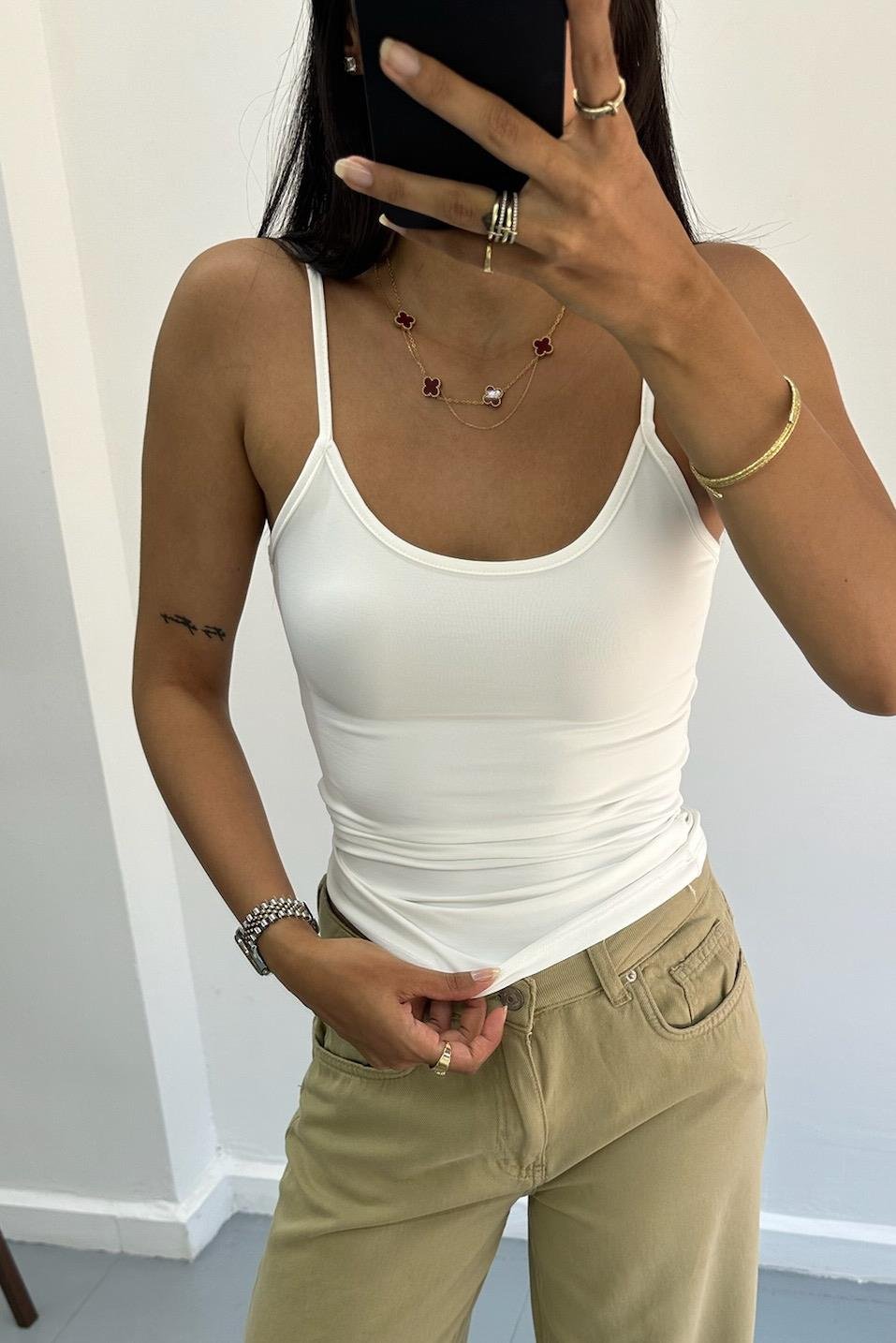 İnce Askılı Poliamid Ekru Top