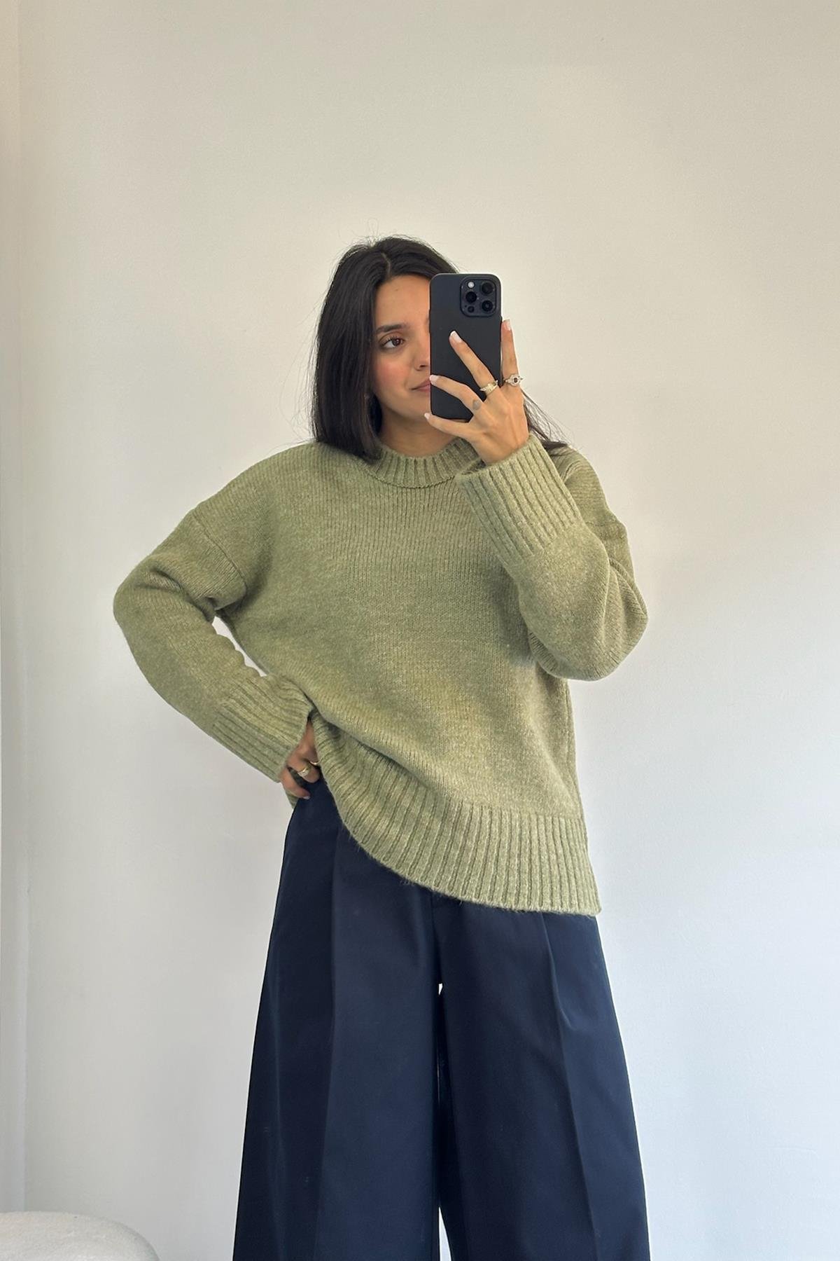 Açık Yeşil Bisiklet Yaka Triko Kazak
