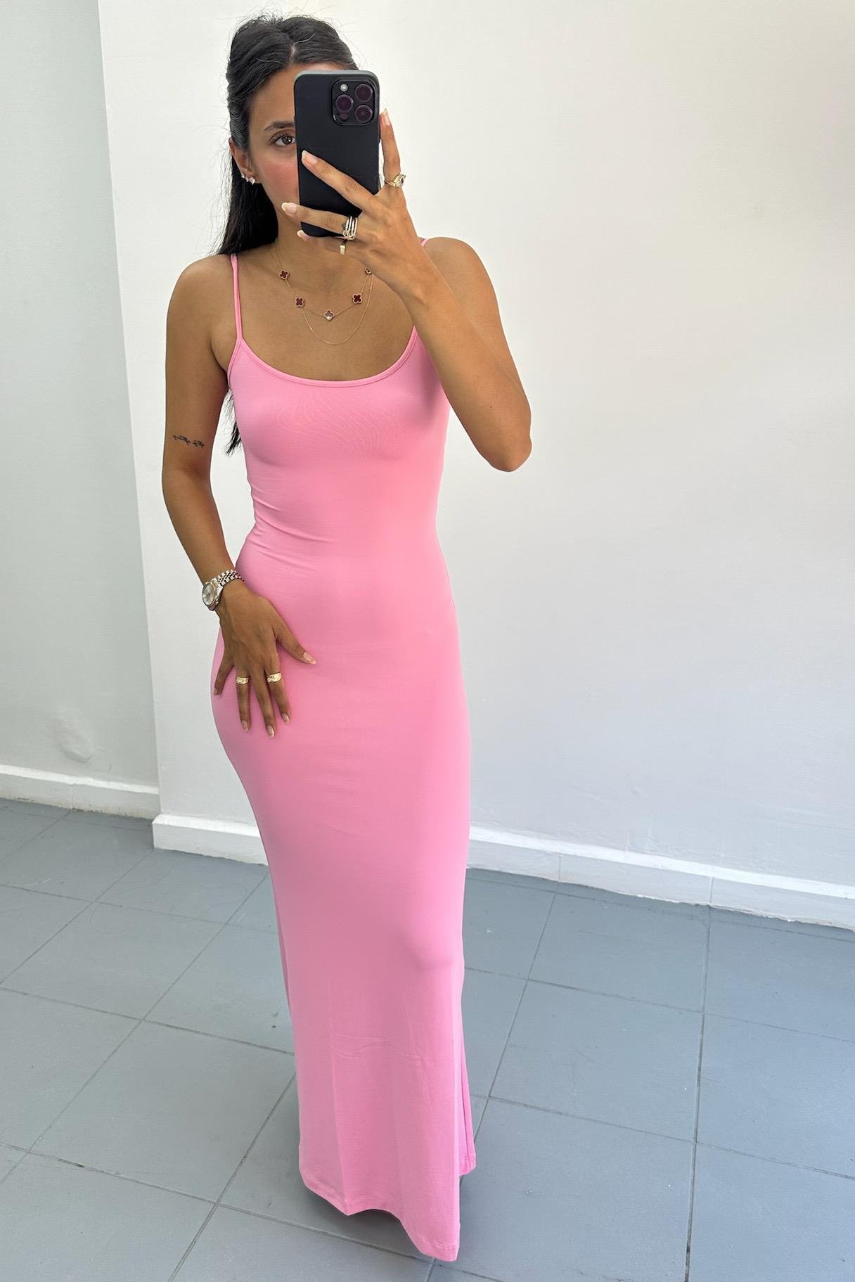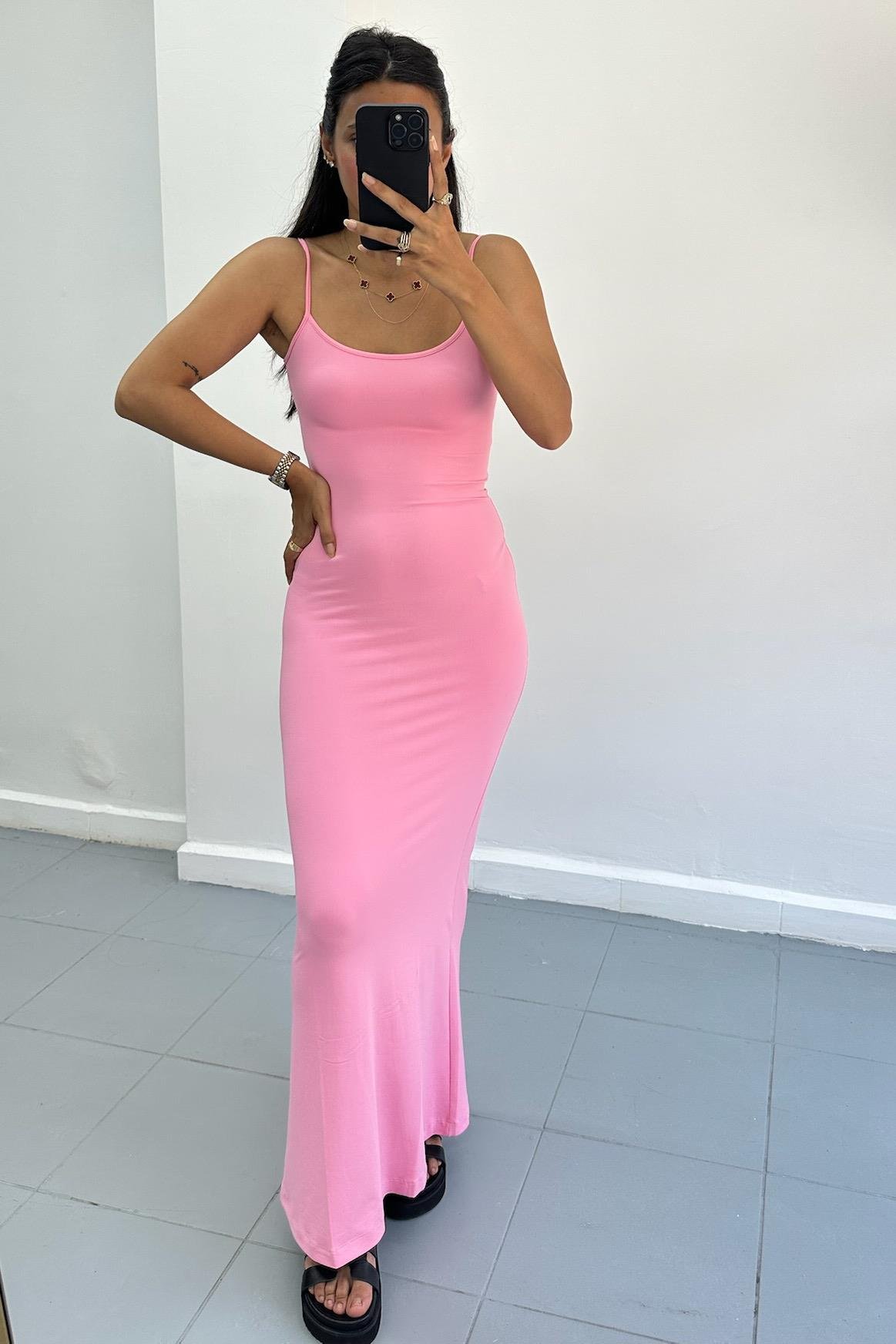 Askılı Uzun Pembe Elbise
