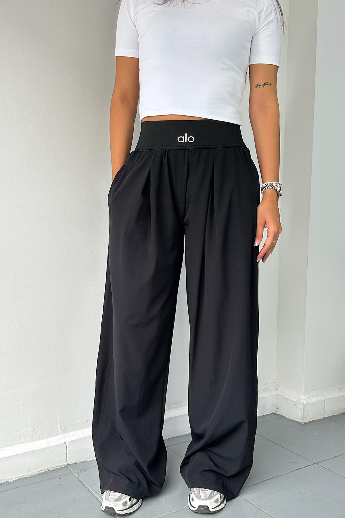 Beli Kalın Lastikli Logo Detaylı Siyah Pantolon