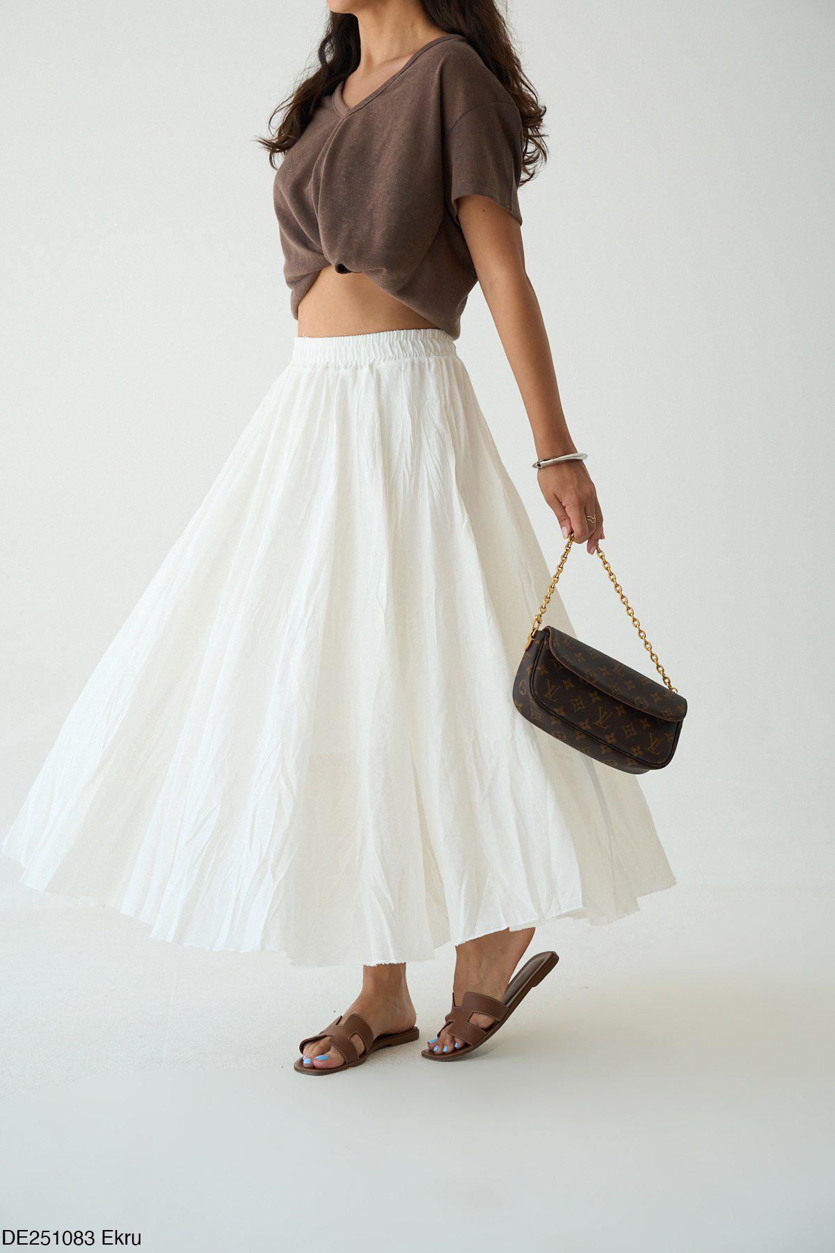 Beli Lastikli Ekru Kraşlı Etek