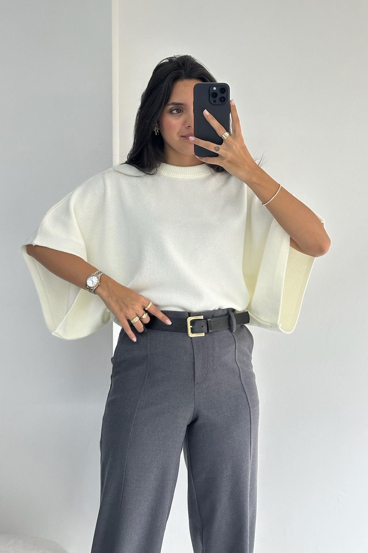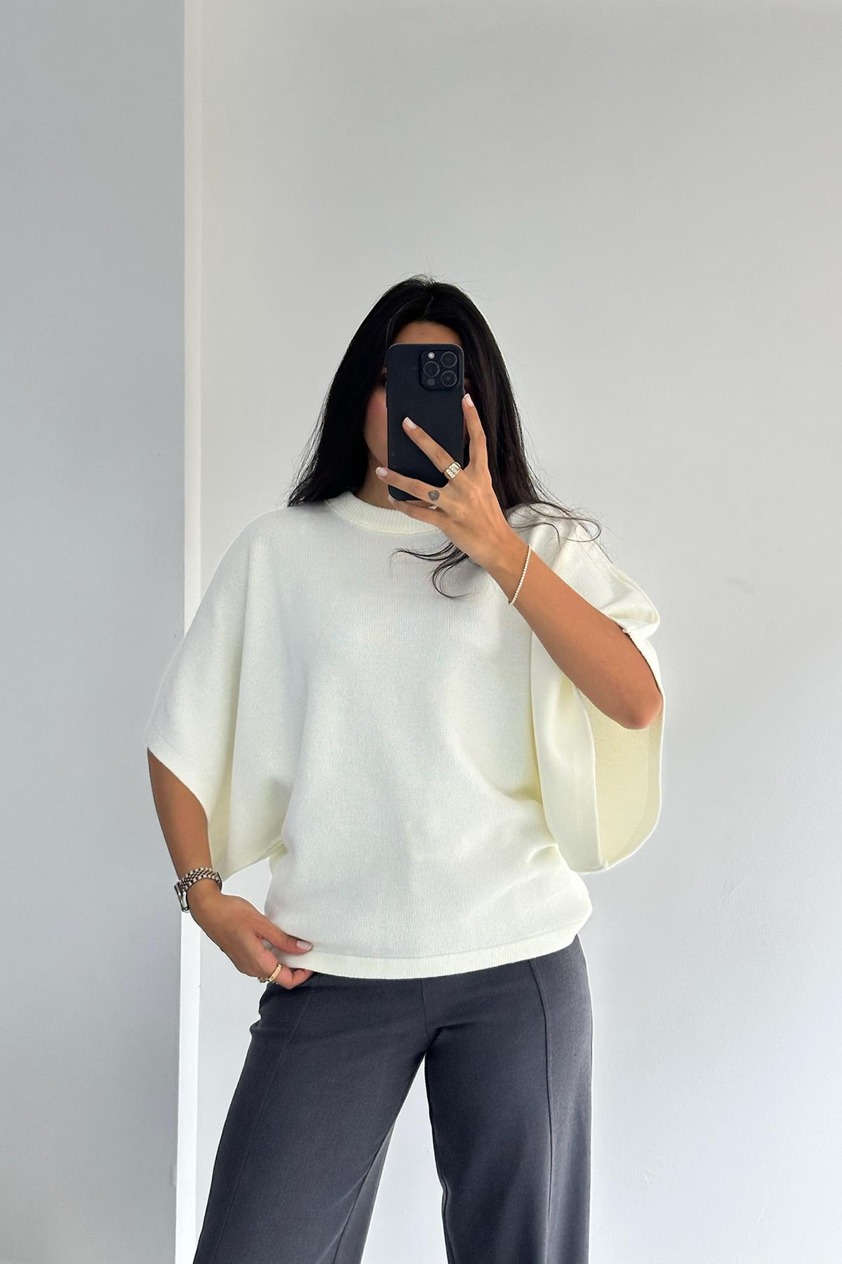 Bisiklet Yaka Yarasa Kol Ekru Triko Kazak