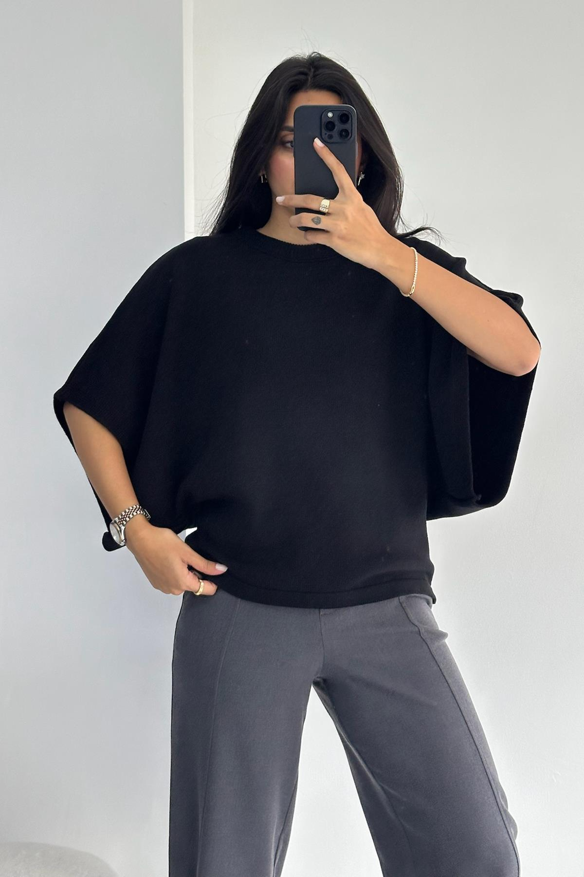 Bisiklet Yaka Yarasa Kol Siyah Triko Kazak