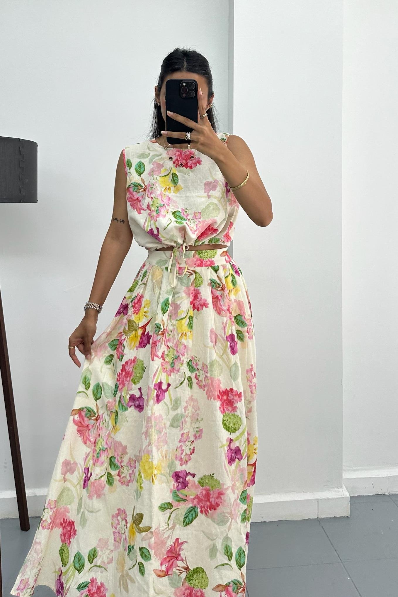 Brode Çiçek Desenli Krem Etek Takım