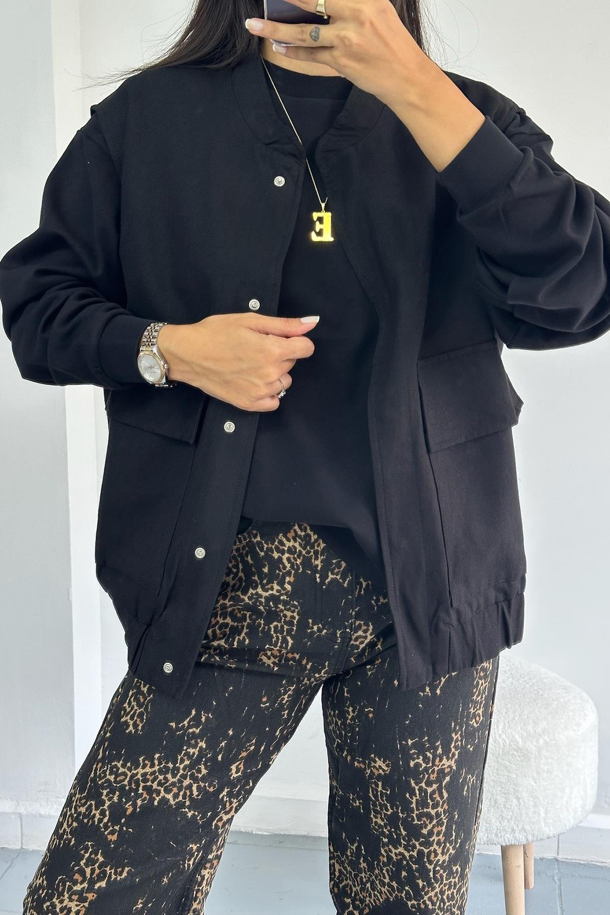 Büyük Cepli Siyah Oversize Yelek