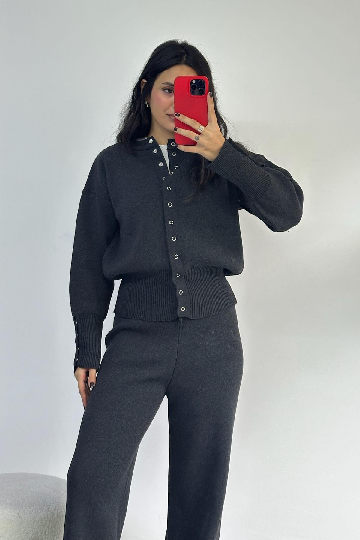 Çıtçıt Düğmeli Premium Triko Füme Takım