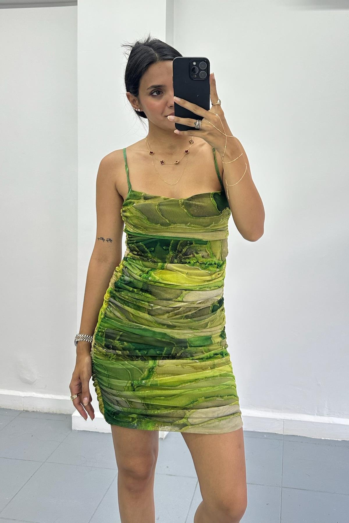 Drapeli Yeşil Mini Elbise