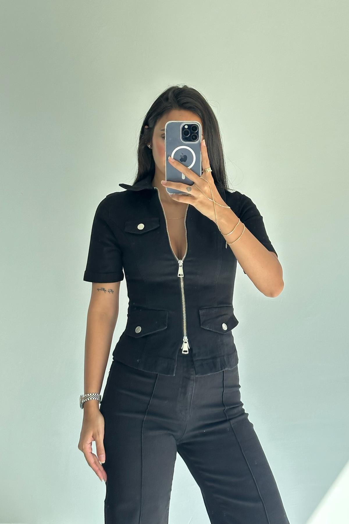 Fermuar Detay Sİyah Kot Ceket