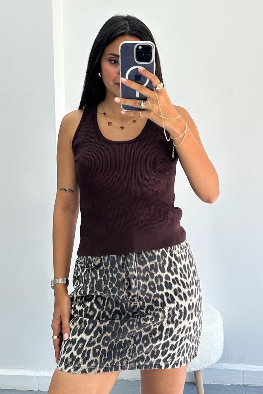 Fitilli Ajurlu Triko Kahve Bluz