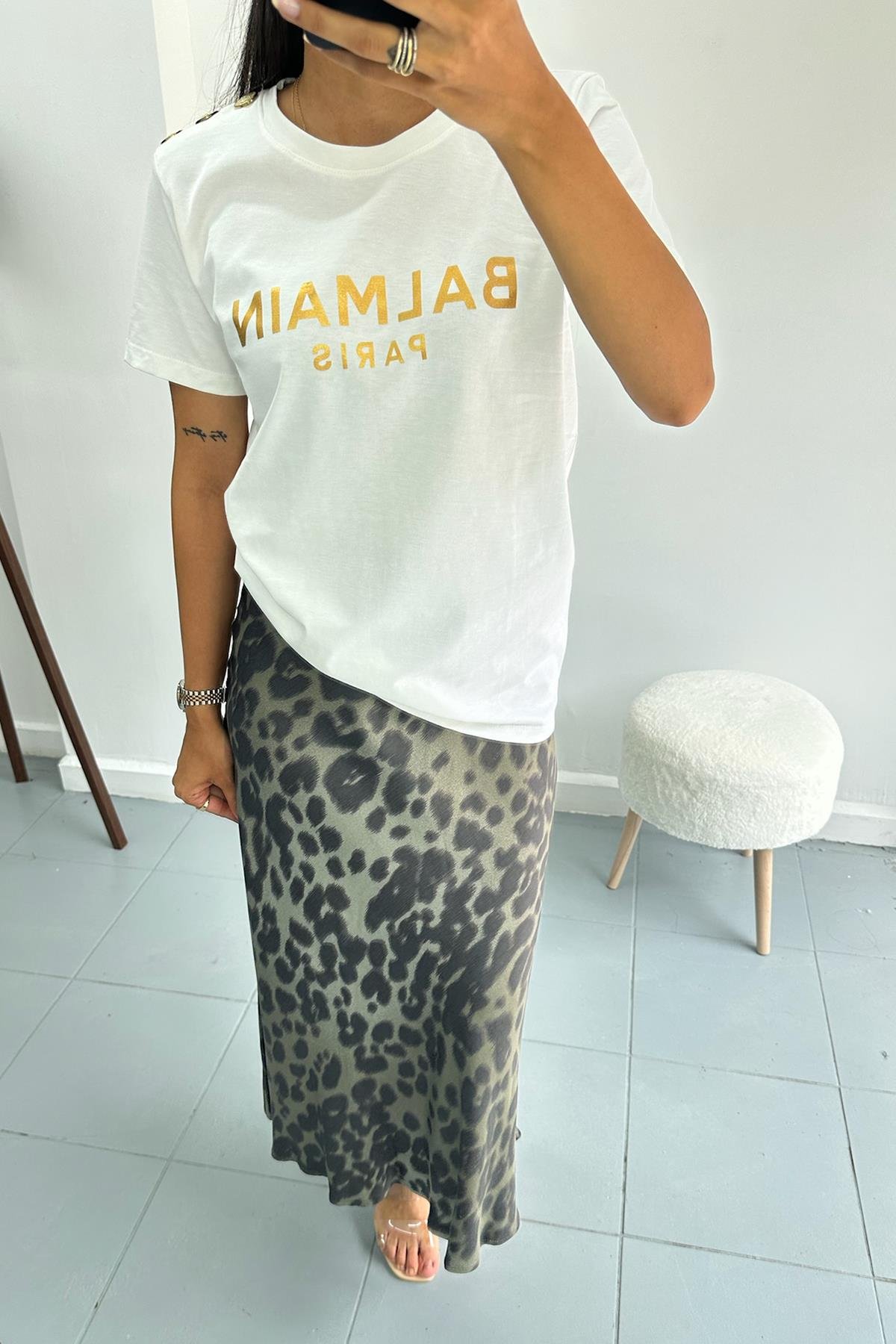 Haki Desenli Saten Etek