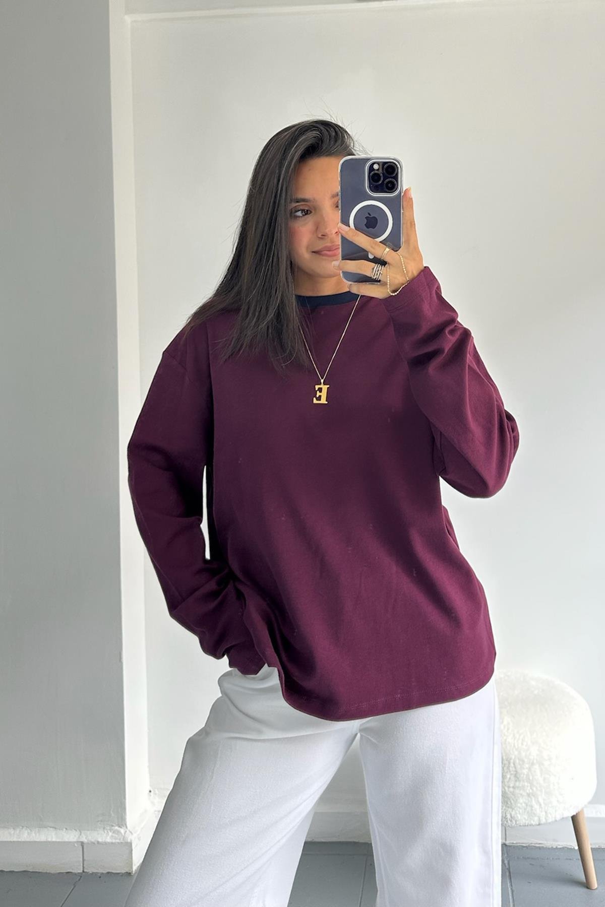 İki Renk Bordo-Lacivert Tshirt