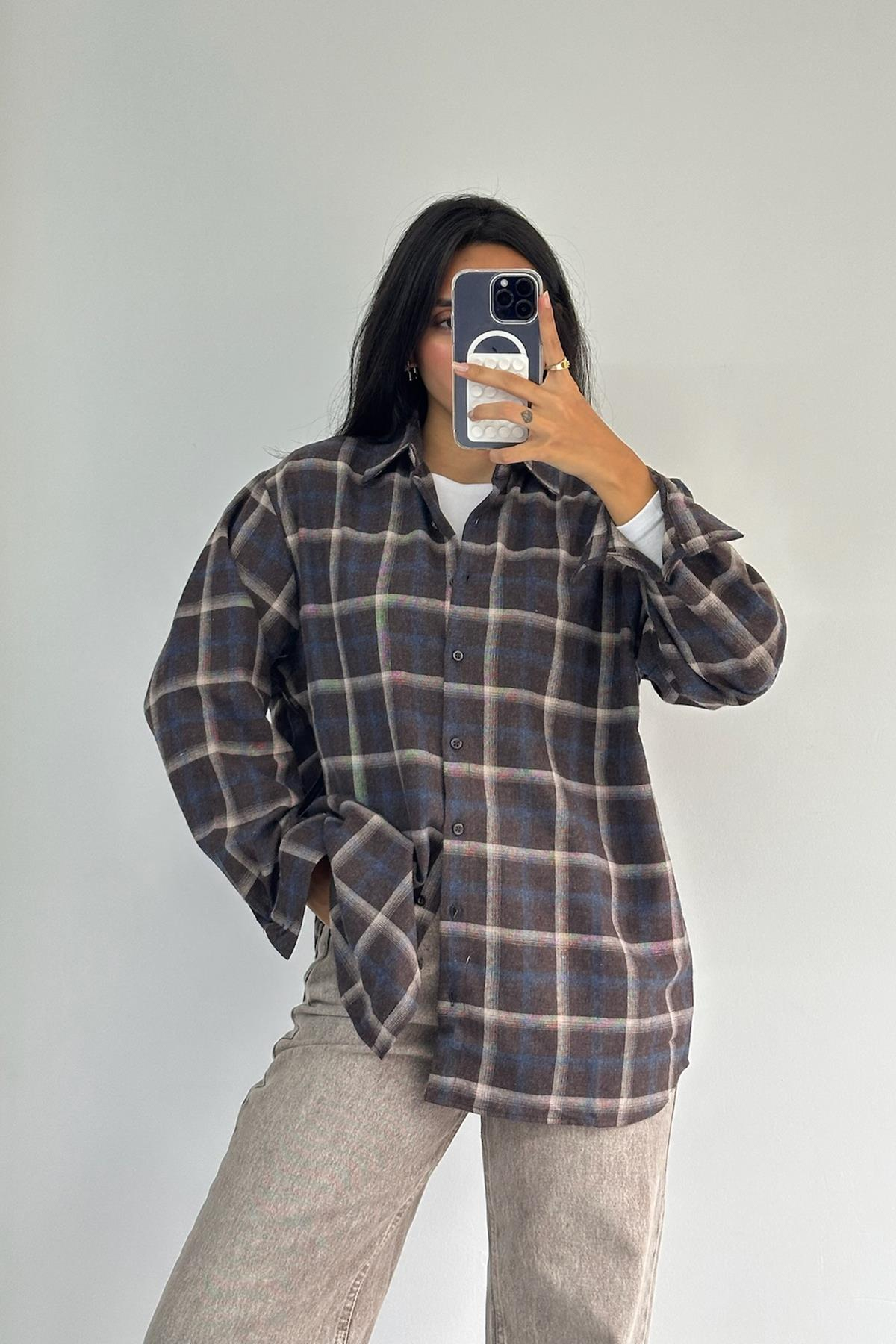 Kahve Bej Çizgili Gömlek