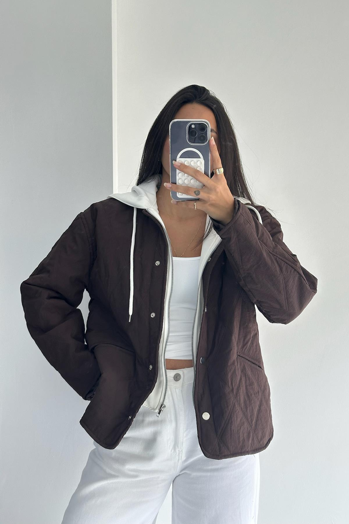 Kapüşon Garni Detaylı Kahve Kapitone Mont