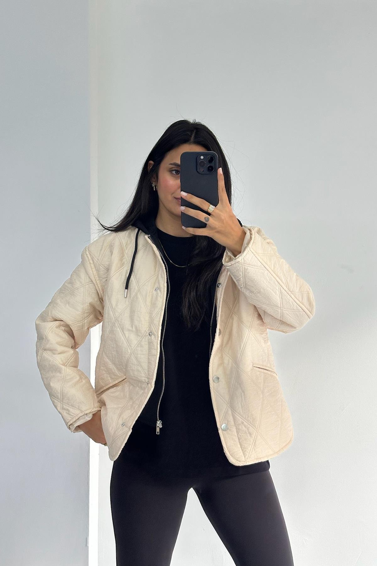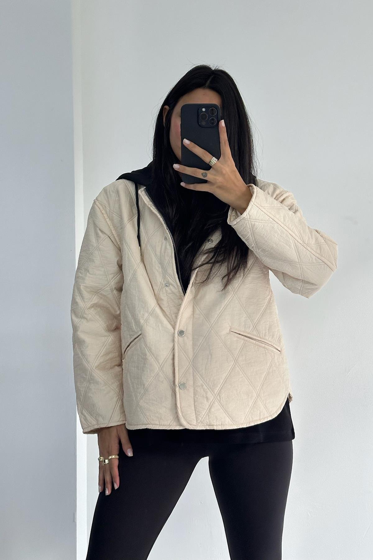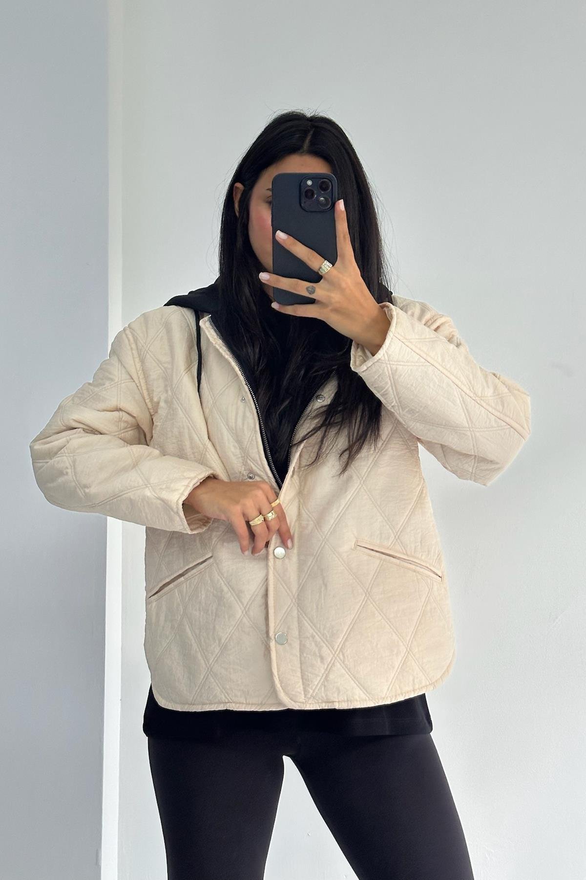 Kapüşon Garni Detaylı Taş Kapitone Mont