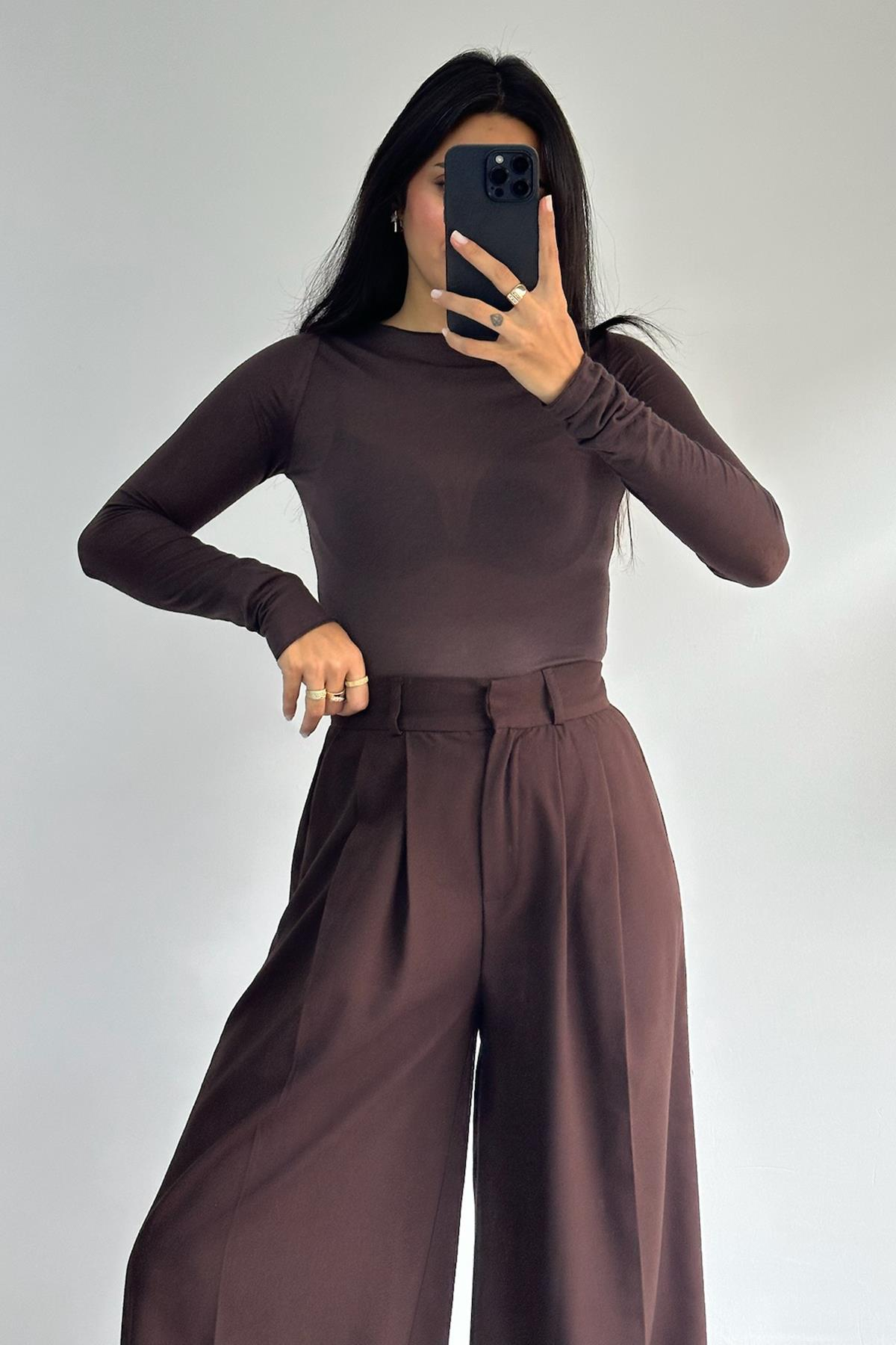 Kayık Yaka Modal Koyu Kahve Kaşmir Ultra Hafif Bluz