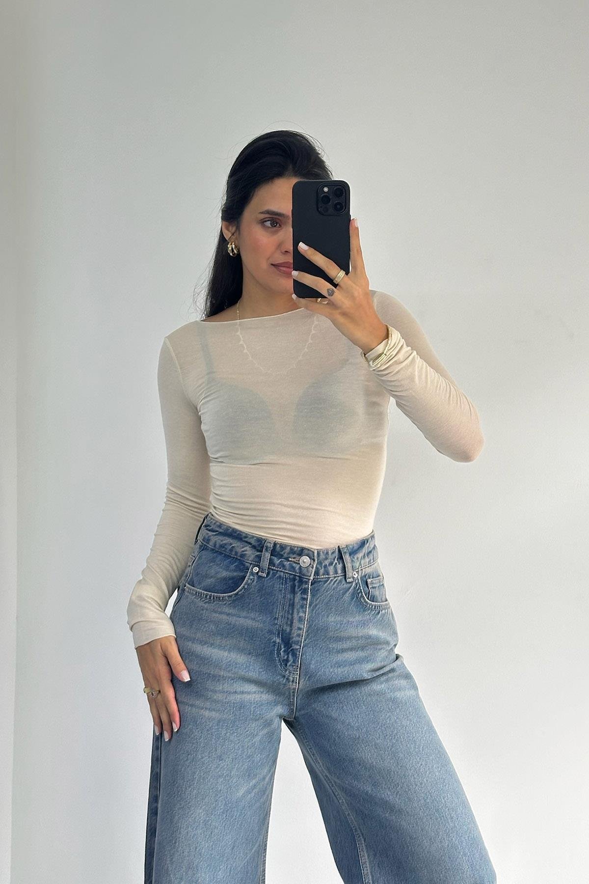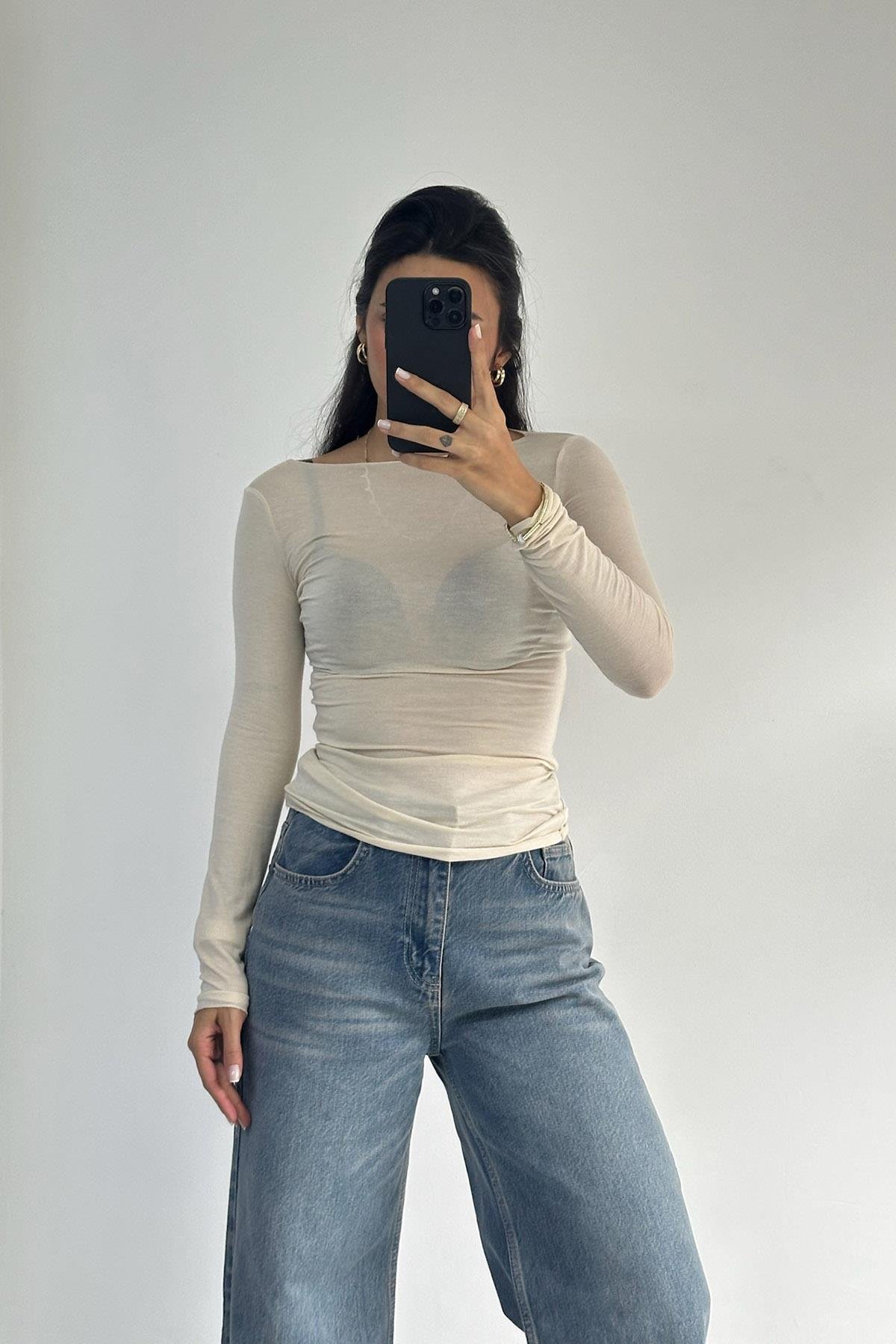 Kayık Yaka Modal Taş Kaşmir Ultra Hafif Bluz