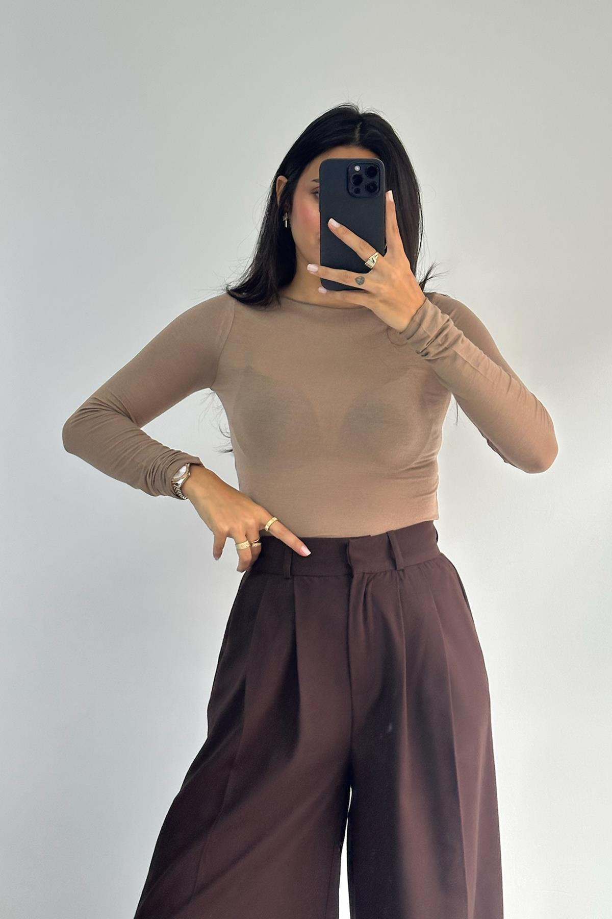 Kayık Yaka Modal Vizon Kaşmir Ultra Hafif Bluz