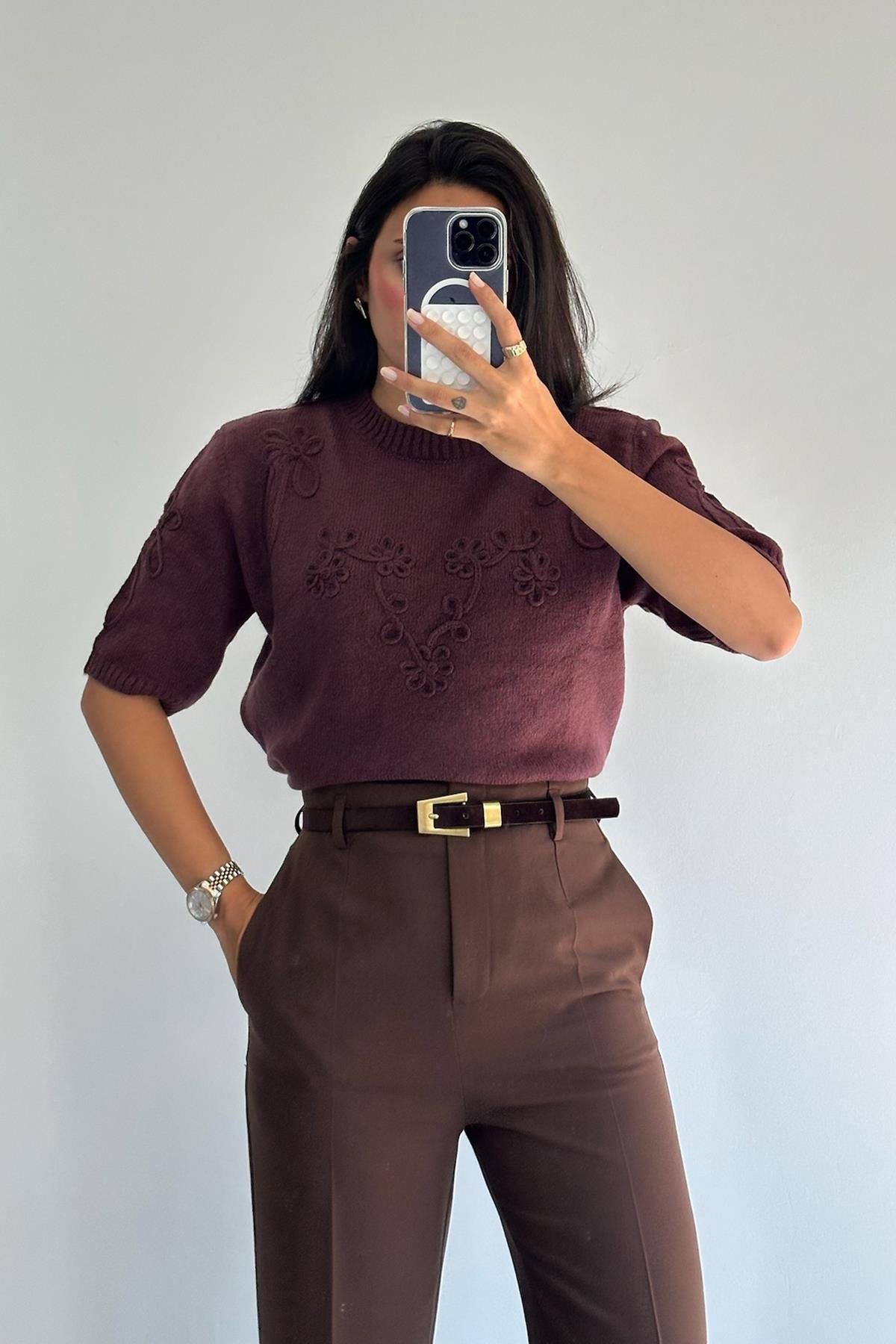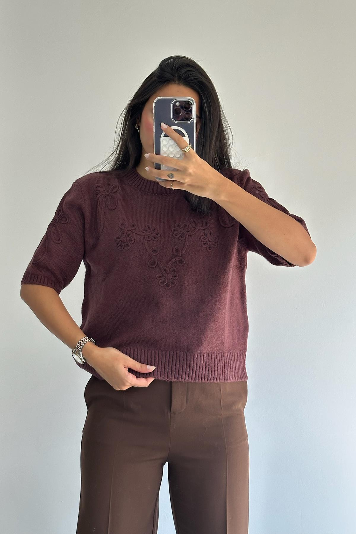 Kısa Kol Süzene Bordo Kazak