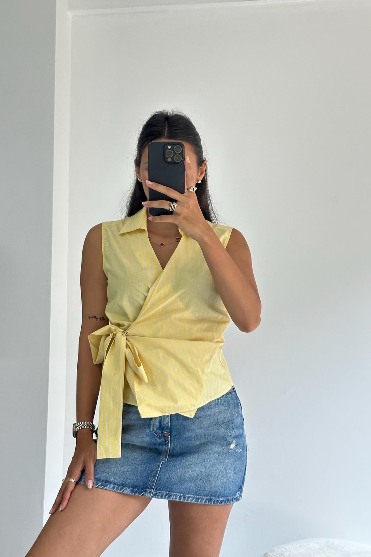 Kolsuz Çizgili Bağlamalı Sarı Gömlek