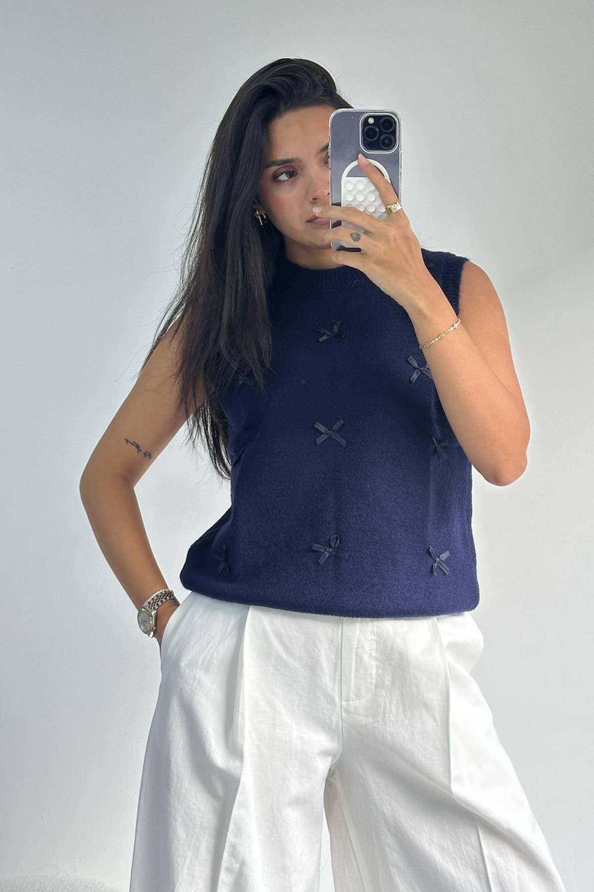 Kurdela Detaylı Lacivert Süveter