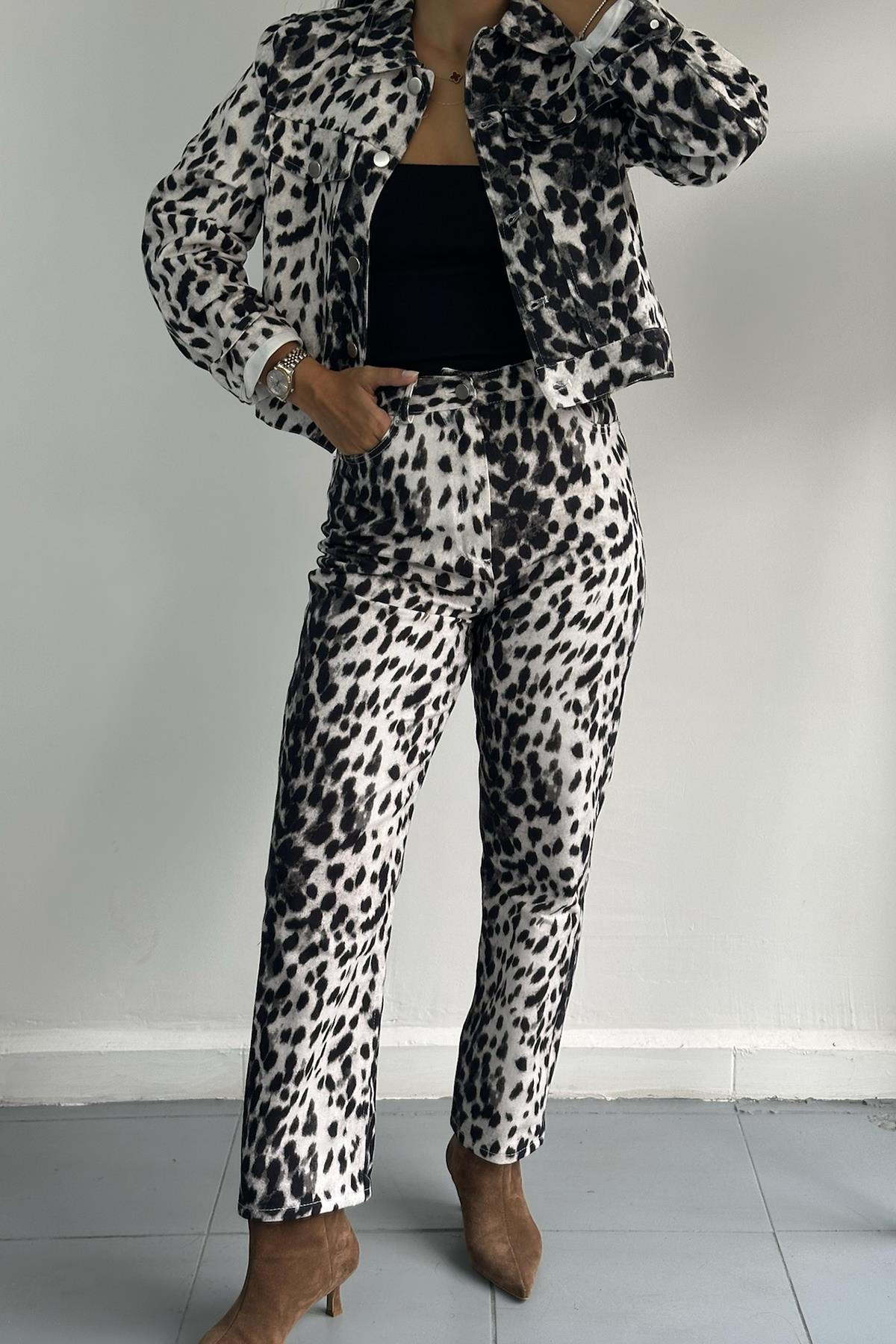 Leopar Desenli Siyah Pantolon