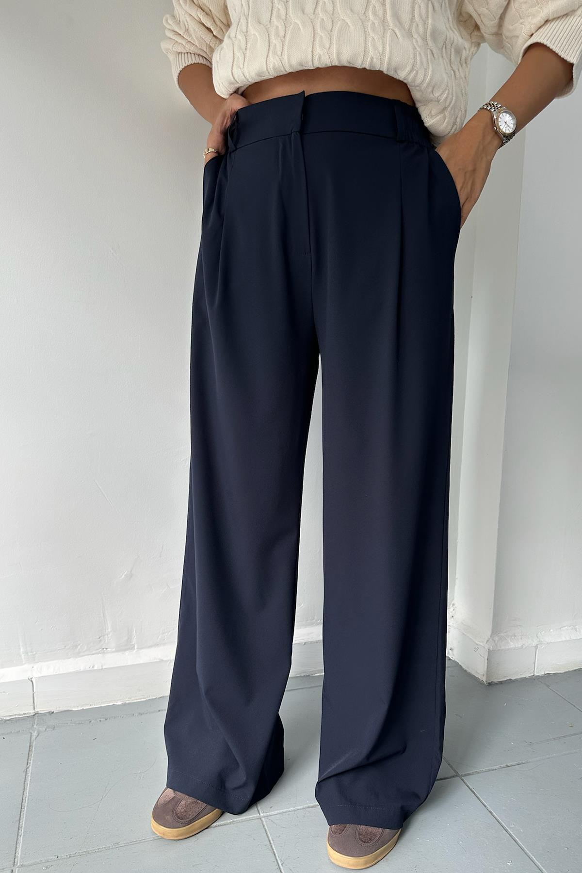 Logo Baskılı Beli Lastikli Lacivert Pantolon