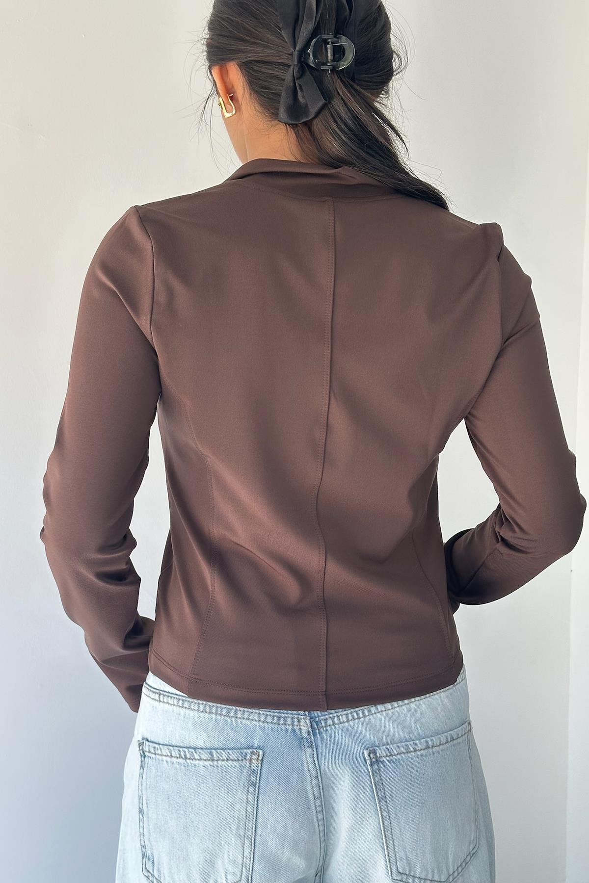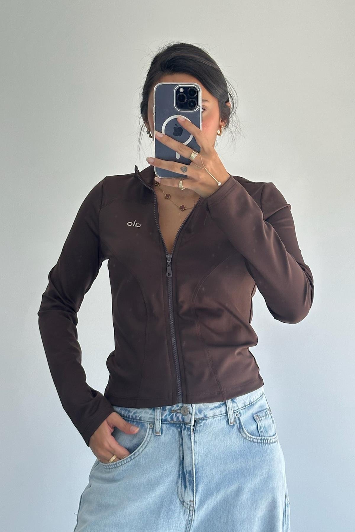 Logo Baskılı Fermuarlı Kahverengi Ceket