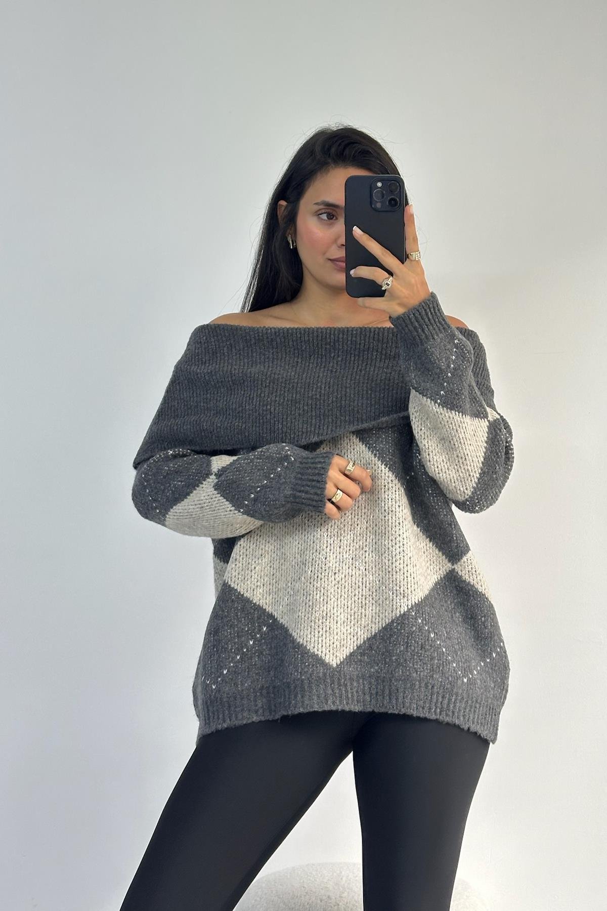 Omzu Açık Antrasit-Bej Kahve Kazak