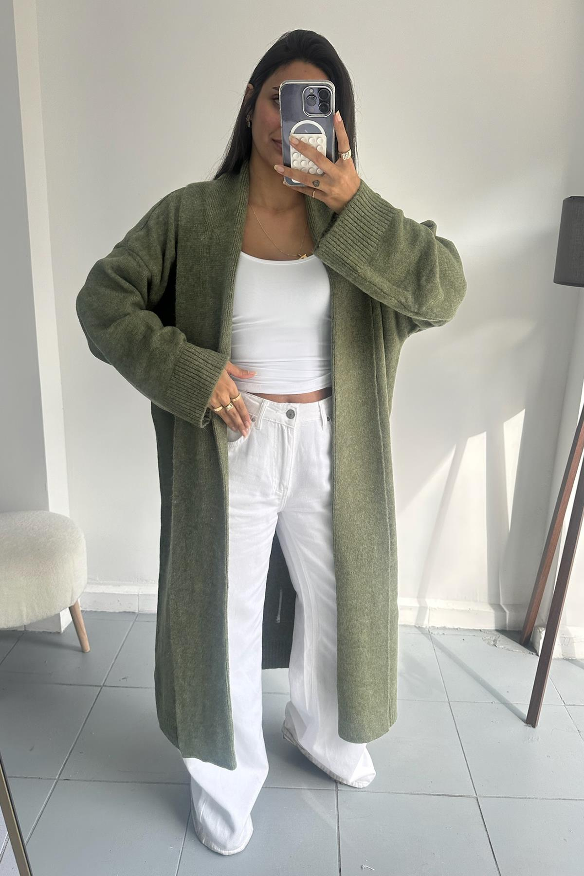 Önü Açık Şal Yaka Açık Yeşil Hırka