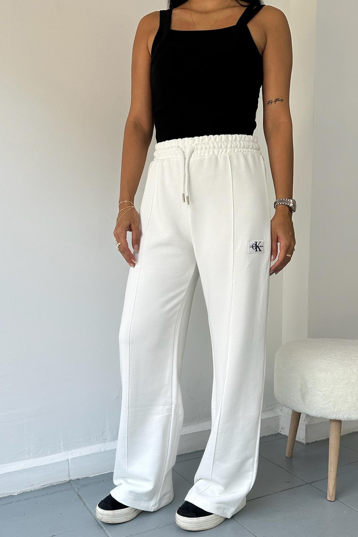 Önü Dikişli Beyaz Eşofman