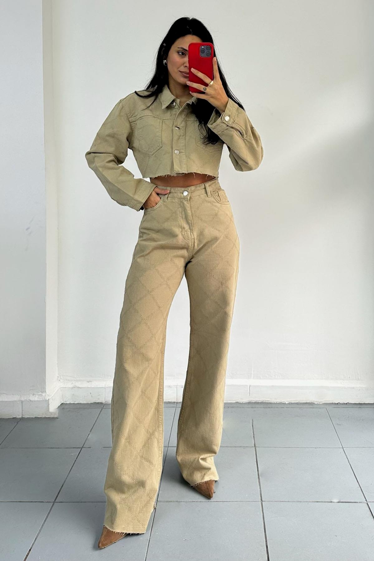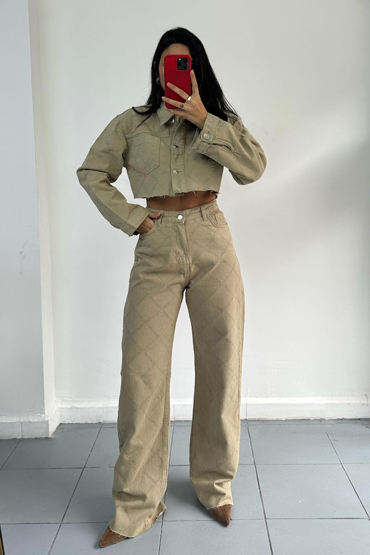 Örgü Detaylı Paçaları Kesik Çağla Pantolon
