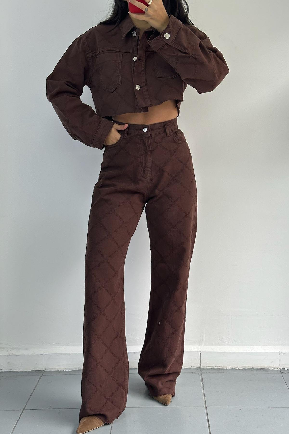 Örgü Detaylı Paçaları Kesik Kahve Pantolon