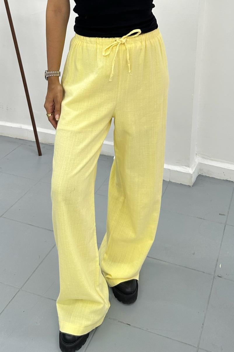Sarı Beli Lastikli Keten Pantolon