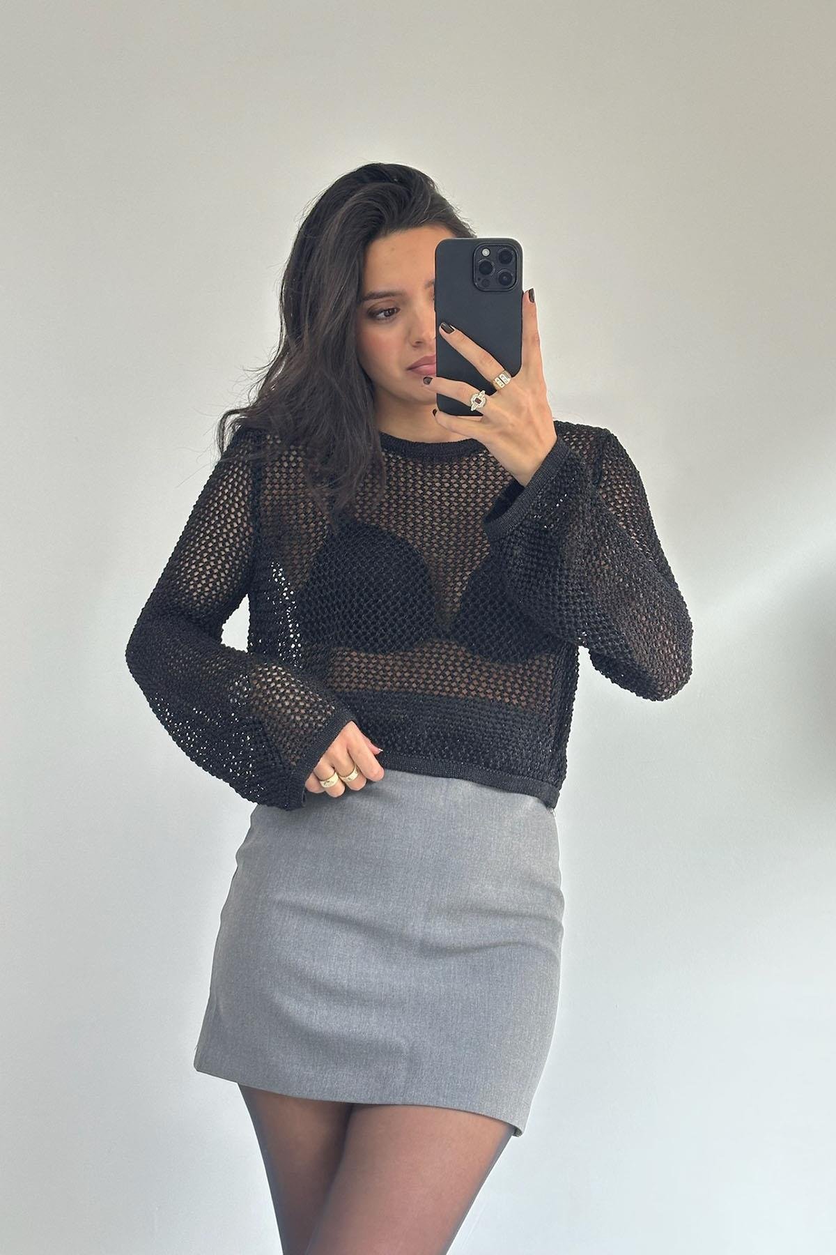 Siyah Ajur Bluz
