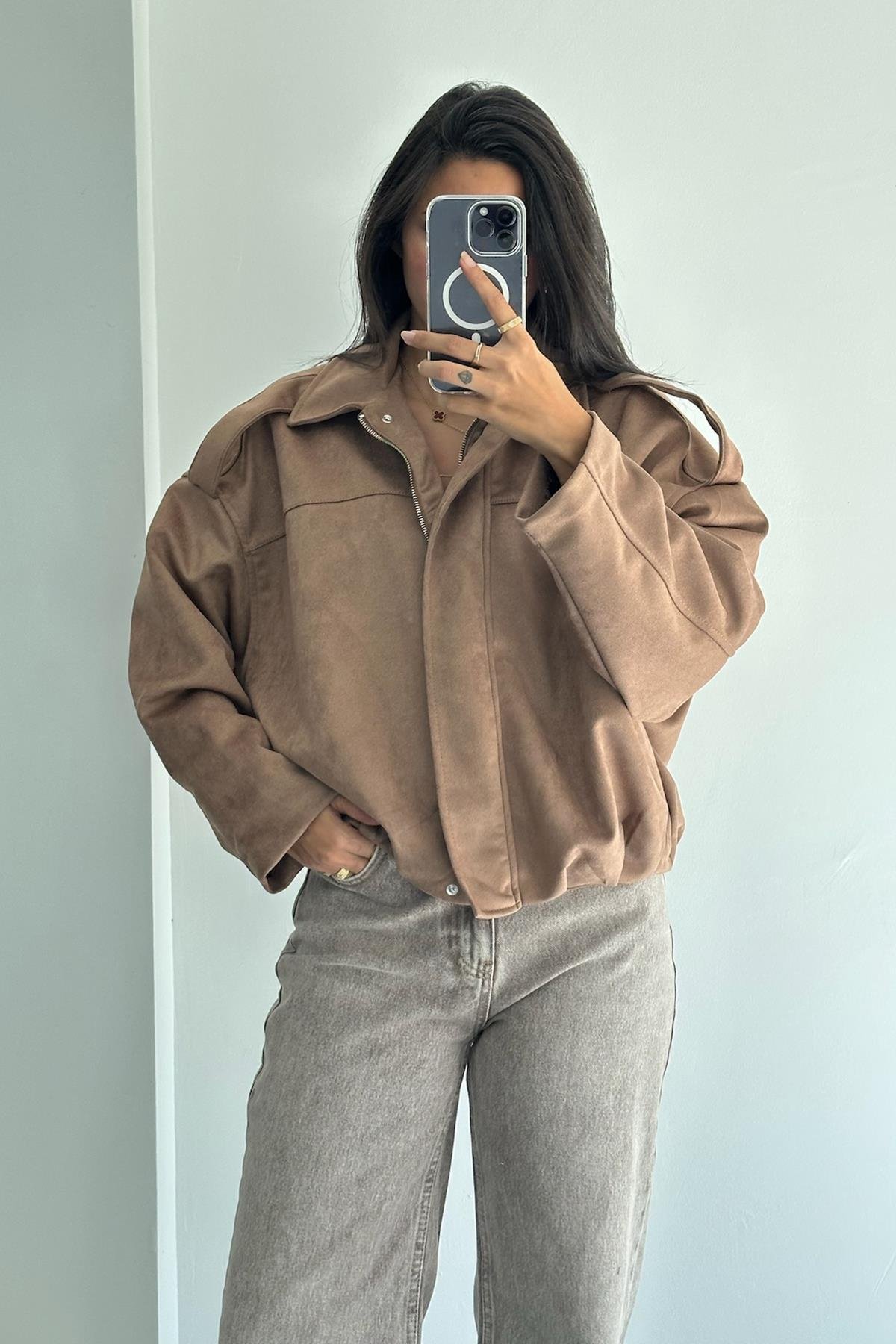 Süet Kahverengi Bomber Ceket
