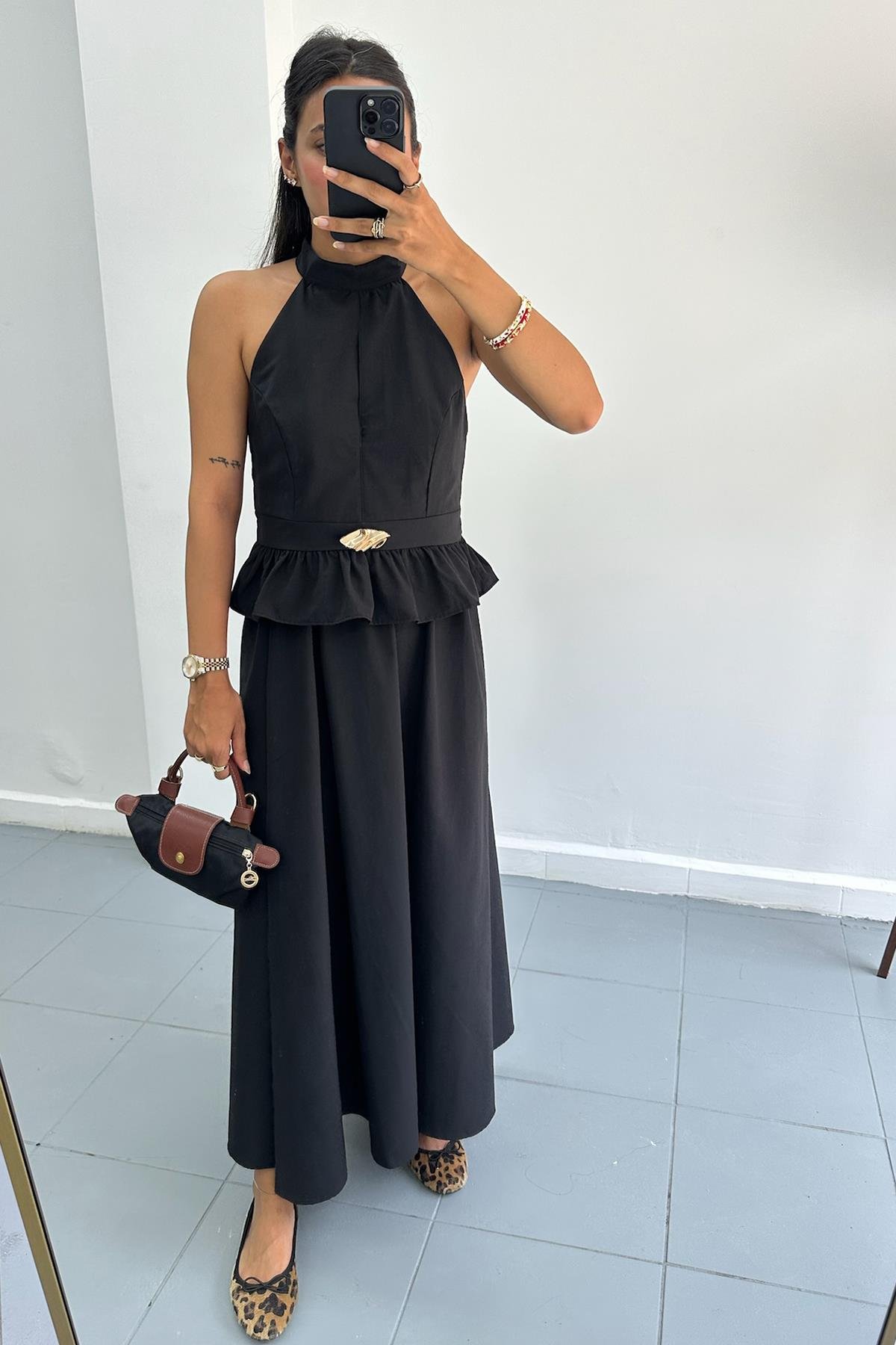 Toka Detaylı Poplin Siyah Takım