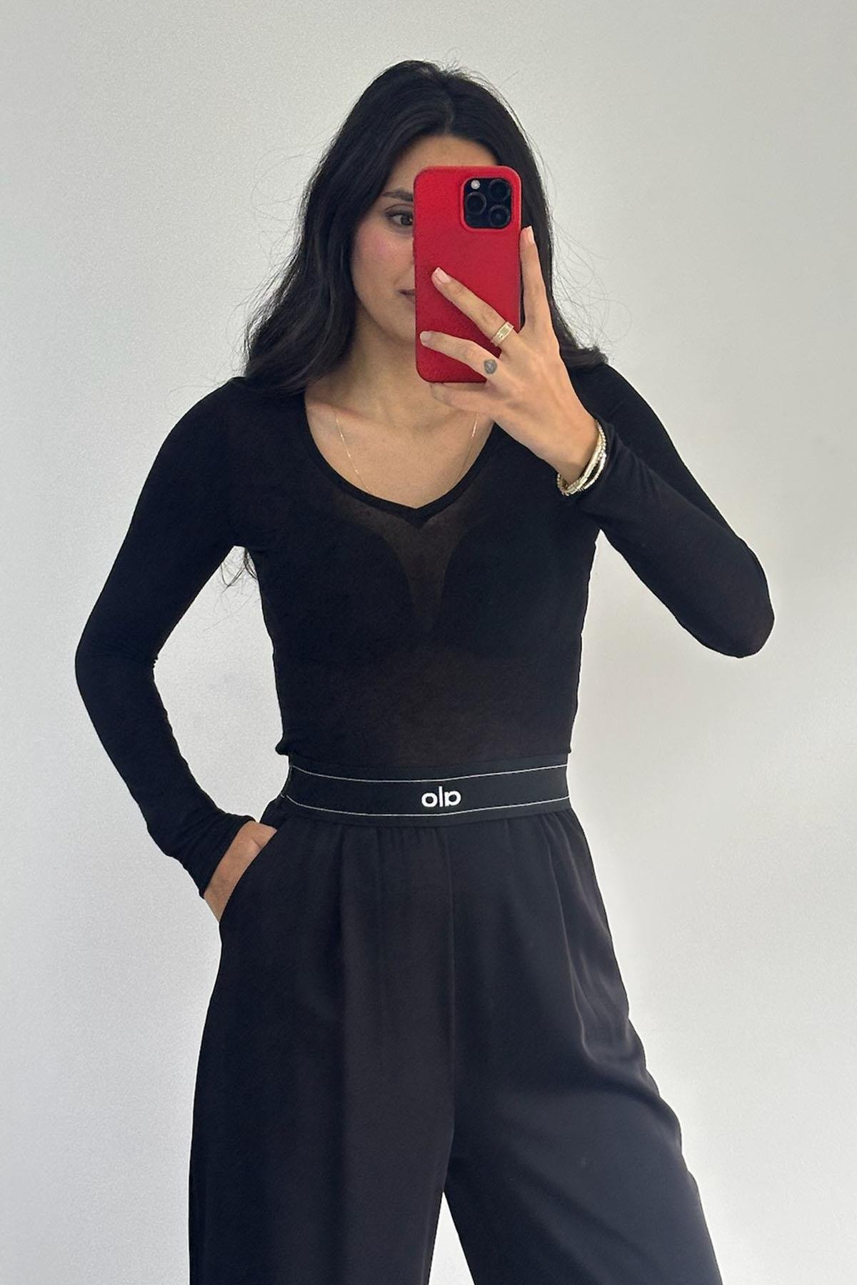 V Yaka Kaşmir Siyah Bluz