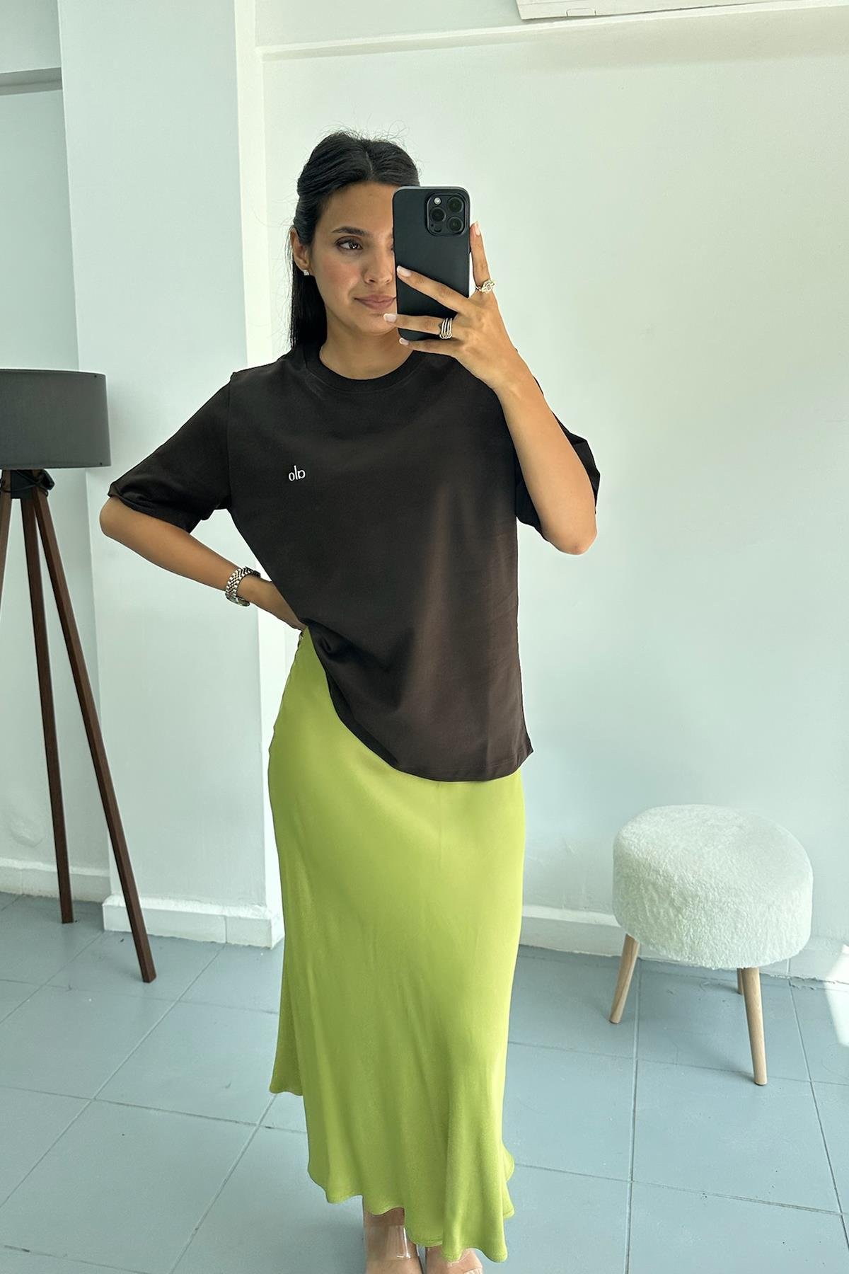 Yağ Yeşili Saten Etek